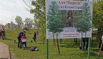 В столичном парке Позняки появилась Первая всеукраинская аллея патриотов памяти Кузьмы Скрябина. На аллее высадили деревья и установили таблички со словами песен Кузьмы.