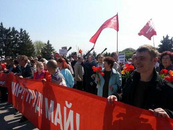 В Киеве возле музея Великой отечественной войны собрались несколько сотен людей с красными флагами и символикой КПУ. Они начали митинг в честь 1 мая вместе с Петром Симоненко, Адамом Мартынюком и Сергеем Крючковым.