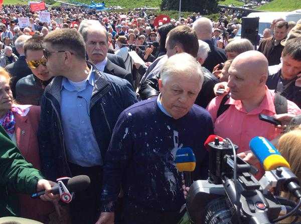Председателя Компартии Украины Петра Симоненко во время первомайской акции возле Национального музея истории Великой Отечественной войны в Киеве облили кефиром.