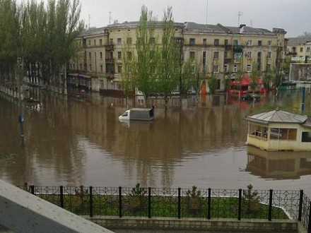 После сильного дождя несколько улиц и площадей в старой части Краматорска затопило.