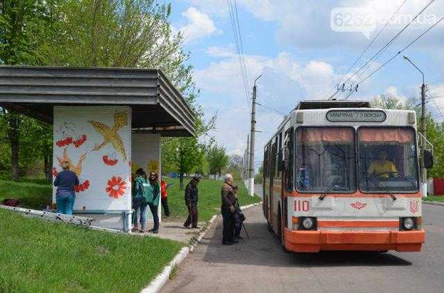 "В Славянске вчера расписали остановку общественного транспорта. Цветы и птицы появились на смену уродливым надписям.