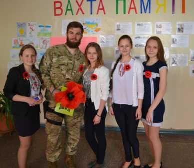 С целью чествования воинов - победителей нацизма и нынешних защитников Родины в ОШ №20 состоялась встреча учеников школы с военнослужащими полка «Азов» посвященных Дню памяти и примирения и Дню Победы над нацизмом в Европе.