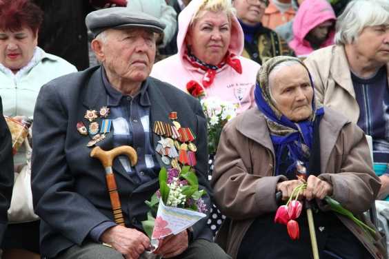 Также, по его словам, сегодня многие пришли на Алею Славы с детьми и портретами своих погибших дедов и прадедов, поздравляли и дарили цветы ветеранам.