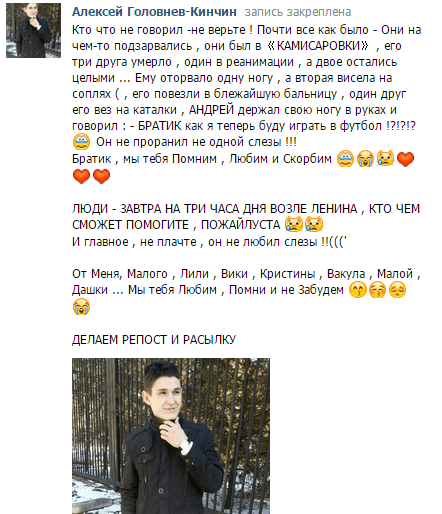 Родственники погибших сообщают подробности случившегося в социальных сетях.