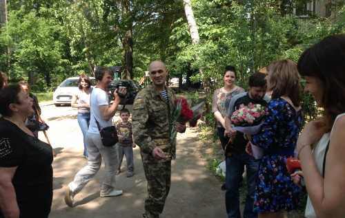 “Киборг” Олег Кузьминых уже в Житомире! Встречали его всем двором! Героям слава!” – написал он и добавил ряд фото.