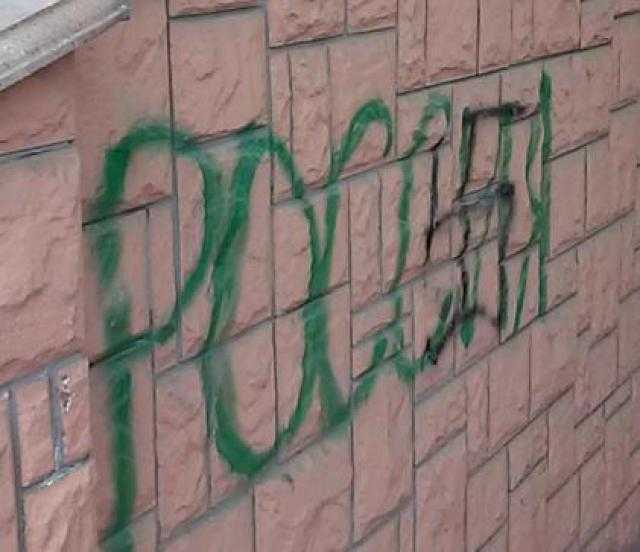 Так, в переходе у библиотеки им. Крупской, который находится напротив здания бывшей Донецкой ОГА, поверх слова «Россия» отчетливо видна черная свастика, нарисованная неизвестными. В социальных сетях дончане подчеркивают, что это и есть истинное отношение Донецка к соседней стране и ее агрессии против Украины.