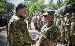 «Знаю, что вы – не «паркетные» генералы и офицеры. Многим из вас пришлось на передовой принимать непосредственное участие в организации и ведении боевых операций, вы заслужили уважение и почет у солдат», – заявил Петр Порошенко.
