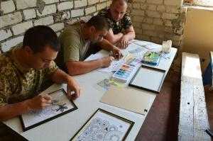 Мастер-класс по витражной живописи провели для солдат в воинской части Северодонецка. Организатор и ведущая встречи Татьяна Вергун рассказала, что такой вид творчества не требует особого мастерства и художественных навыков. Сосредоточенность на рисунке помогает взрослым снять стресс, отвлечься от тягостных мыслей и получить приятные эмоции.