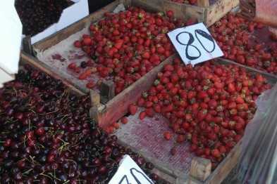 Клубника на рынке стоит 80 рублей, черешня - 130.