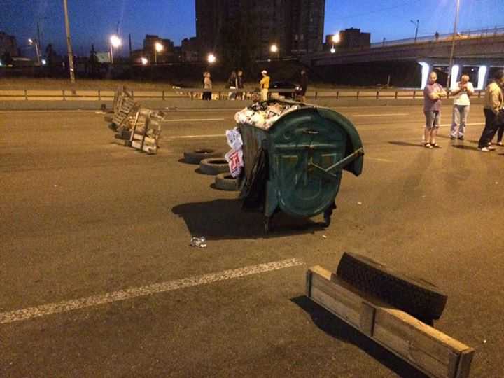 Протестующие вынесли на дорогу поддоны, ящики, шины и металлические мусорные баки.