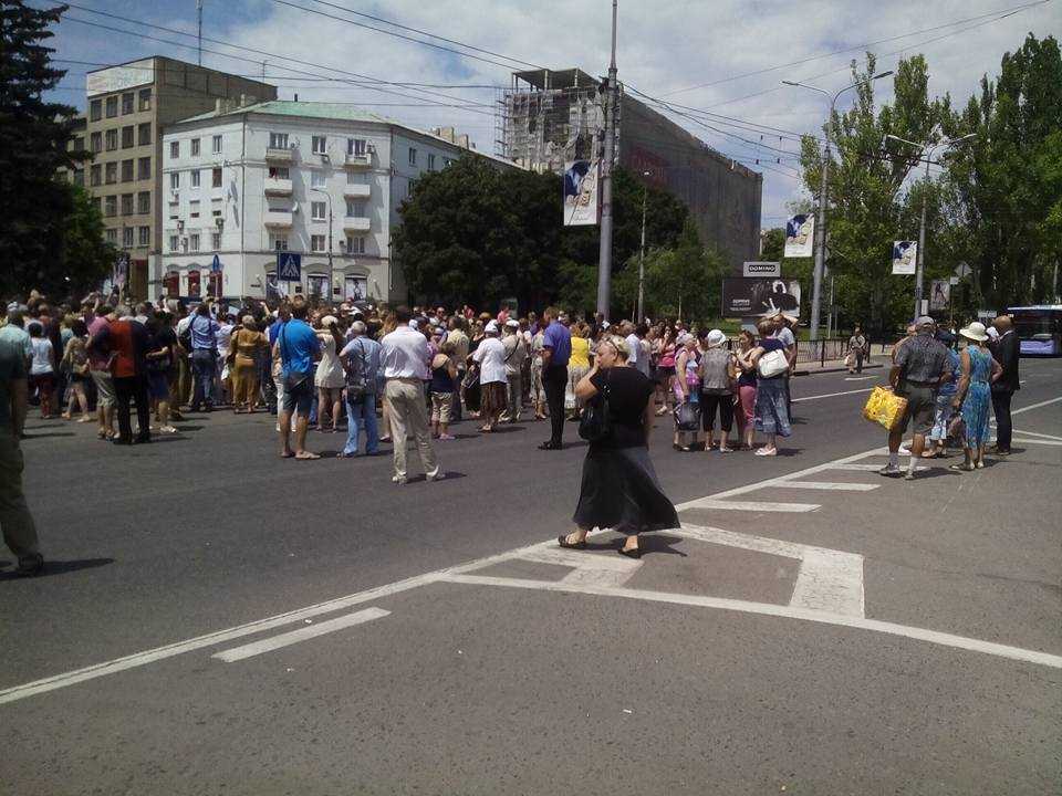 Около 500 жителей подконтрольго ДНР Донецка вышли на стихийный митинг в центре города. Большинство митингующих являются жителями поселка "Октябрьский".