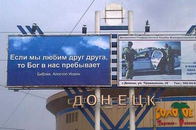 Отметим, что подобного рода билборды несколько месяцев назад появились в оккупированном боевиками «ДНР» Донецке. Жители города активно обсуждали в социальных сетях необычные «рекламные щиты».