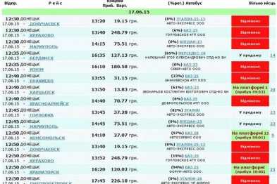 Как видно, из Донецка можно выехать автобусами в оккупированные боевиками Горловку, Енакиево. Из контролируемых силовиками городов донецкие автобусы пока принимают Краматорск, Константиновка, Мариуполь и Бердянск.
