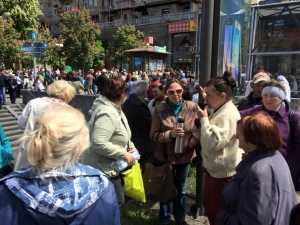 В центре Киева на углу улицы Крещатик и бульвара Шевченко митингуют около тысячи человек.