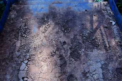 Уменьшение осадков позволило наплыву подсохнуть и прохожие дробят его на куски, проходя по грязевой корке, и сбрасывают с площадок лестничных маршей.