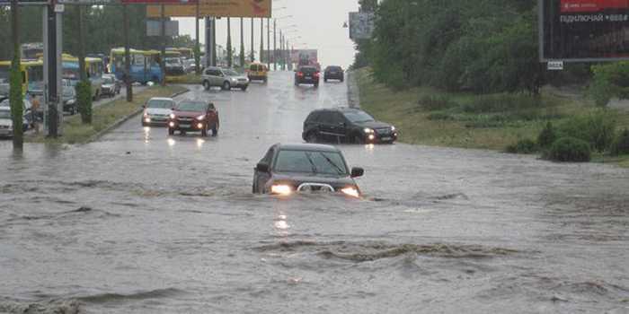 Сильный ливень затопил путь, который ведет к поселкам Котовского и Таирова. Машины здесь еле проходят через водные барьеры. Глубина луж достигает полуметра.