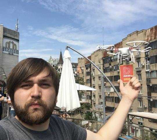 В Киеве появился первый дрон-курьер. Свежезапущенная компания Deinde, которая развивает в Украине внутренний туризм, решила удивить своих клиентов и доставить им приглашение на тур в Одессу с помощью квадракоптера. Первым получателем стал популярный блогер уанета KrusKrus, он же Александр Барабошко. Дрон принес ему посылку прямо на крышу заведения, в котором он завтракал.