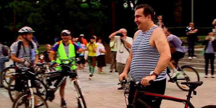 Губернатор Одесчины Михаил Саакашвили принял участие в веломарафоне, посвященном Дню Военно-Морских Сил Вооруженных Сил Украины. При этом сам Саакашвили был одет в тельняшку.