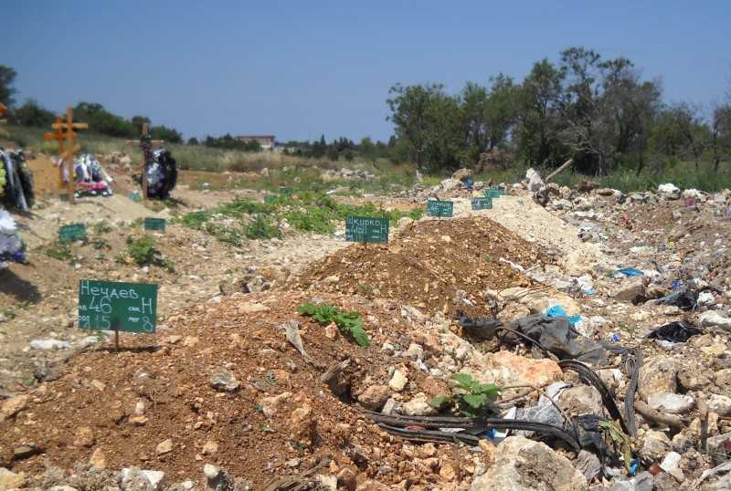 На популярном видеохостинге Youtube появилось шокирующее видео одного из кладбищ временно оккупированного Севастополя. На нем четко видно, что многие новые могилы вырыты прямо в мусоре, а из стен могил торчат куски целлофана.