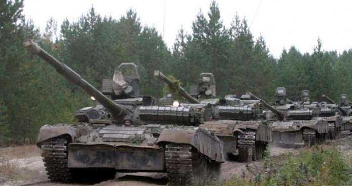 Миссия зафиксировала 18 боевых танков (Т-64), шесть военных грузовиков и три бронетранспортера (БТР) на 100-500 метров на запад от главной дороги, которые выполняли учения с боевой стрельбой", - говорится в сообщении специальной мониторинговой миссии ОБСЕ в Донецкой и Луганской областях.