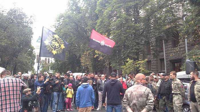 Около 300 активистов ждут приезда Дмитрия Яроша, а потом отправятся в МВД озвучить свои требования. На месте дежурит карета скорой помощи, ситуация спокойная, без происшествий.