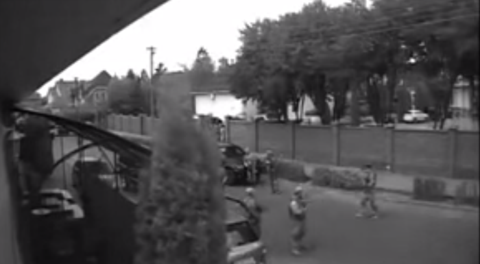 Так, на пятидесяти минутных видео видно машины, которые стояли во дворе спорткомплекса и вооруженных бойцов «Правого сектора».