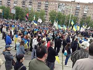 В Мариуполе перед зданием мэрии проходит митинг против отвода подразделений и техники из Широкино.