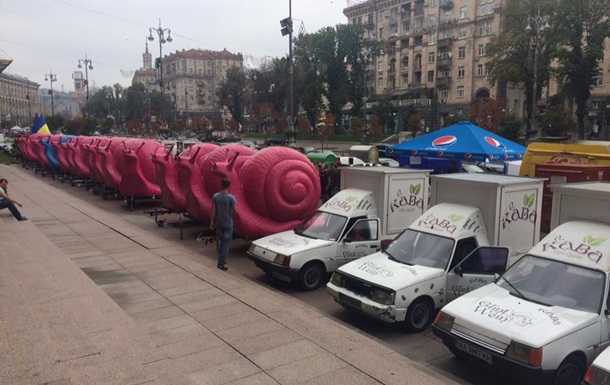 В центре Киева под зданием Киевской городской мэрии приехали владельцы кофемобилей, протестуя против их закрытия.