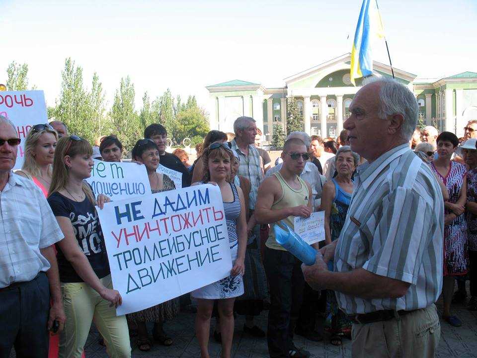 Сегодня, 30.07 возле Северодонецкого горисполкома прошел митинг с участием коллектива троллейбусного депо и общественных организаций с требованием не увольнять директора и не ликвидировать предприятие.