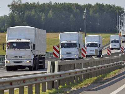 "На 44 грузовиках были изображены российские флаги и надписи о "гуманитарной помощи" из России, на одном грузовике было написано "День знаний в Новороссии", - сказано в сообщении.