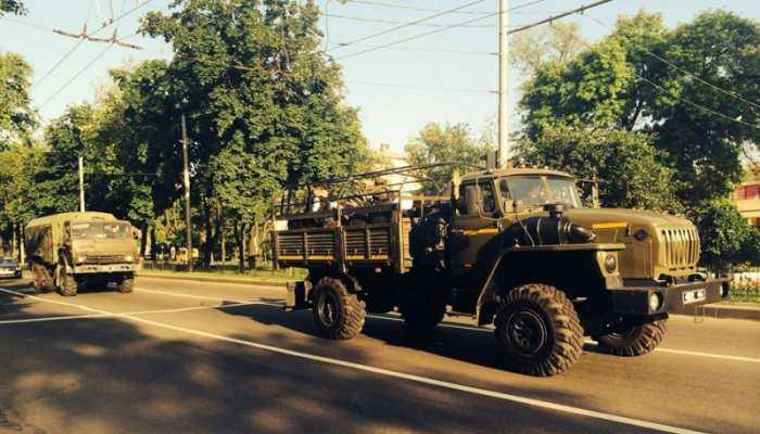 В послеобеденную пору по Донецку курсировали военные «Уралы» с живой силой, а также топливозаправщики. Колонна двигалась в направлении Донецкого аэропорта.