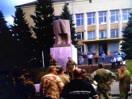 Памятник Ленину стоял в центре поселка. 7-метрового вождя обмотали тросом за шею и повалили.