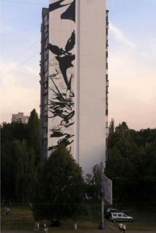В Святошинском районе Киева португальский уличный художник Антонио Коррейя нарисует на 16-этажном жилом доме масштабный мурал. Мурал "Птицы", на 16-ти этажном здании. Как можно судить, рассматривая фото будущего арт-объекта, основная тема изображения — птицы.