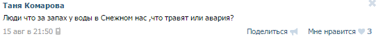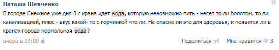 "Люди что за запах у воды в Снежном нас ,что травят или авария?"