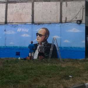 Изображения президента Российской Федерации с хэштегом #НАШ появились во многих городах Крыма.