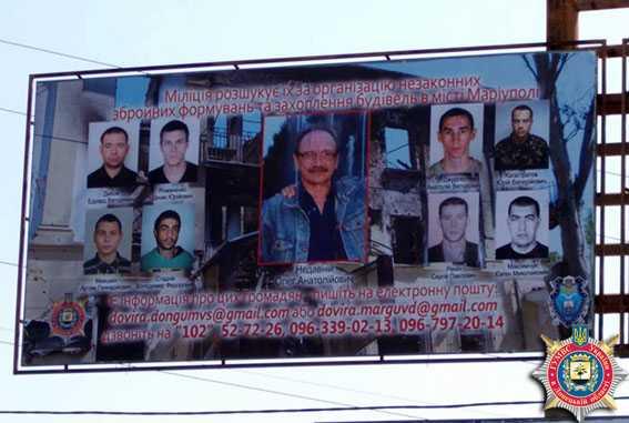 "На рекламной плоскости нанесены четкие фотографии и имена мужчин, которые причастны к захвату административных зданий в Мариуполе. У сотрудников оперативного блока есть основания полагать, что эти граждане состоят в незаконных вооруженных формированиях и могут скрываться на территории города. Чтобы установить их местонахождение и пресечь преступную деятельность, направленную на дестабилизацию обстановки в Мариуполе, милиционеры просят горожан сообщать любую информацию о данных лицах в анонимном порядке. Можно позвонить на «102» или же написать на электронные адреса ящиков доверия милиции: [email protected] или [email protected]", - сказано в сообщении МВД.