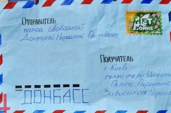 24 августа жители в подконтрольном "ДНР" Донецке написали письмо на имя президента Украины Петра Порошенко с требованием прекратить боевые действия в Донбассе. Огромный конверт размером 1-1,5 метра собираются направить в Киев.