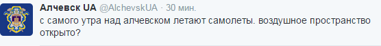 "С самого утра над Алчевском летают самолеты. Воздушное пространство открыто?" - такое сообщение появилось сегодня в Твиттере.