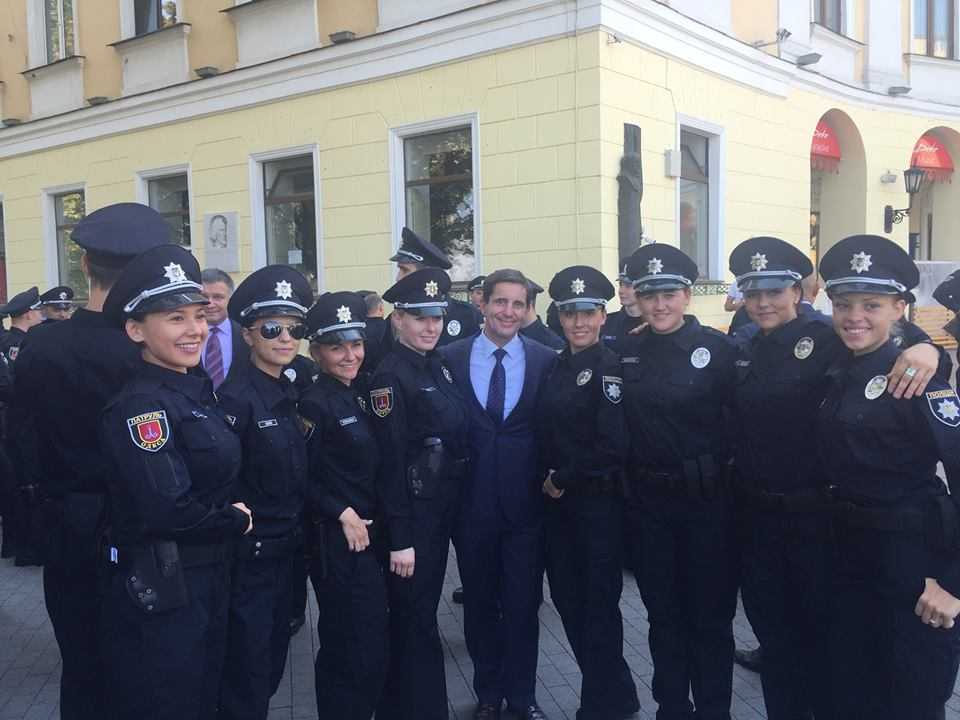 Советник министра МВД Украины Зорян Шкиряк уже успел сфотографироваться с прекрасной половиной новой патрульной службы Одессы и выставить фото в Фейсбук.