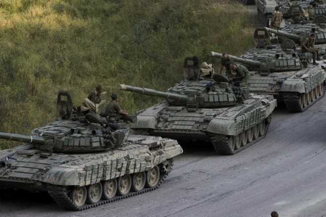 Также из России в Донецк на тягачах переброшены три танка Т-80.