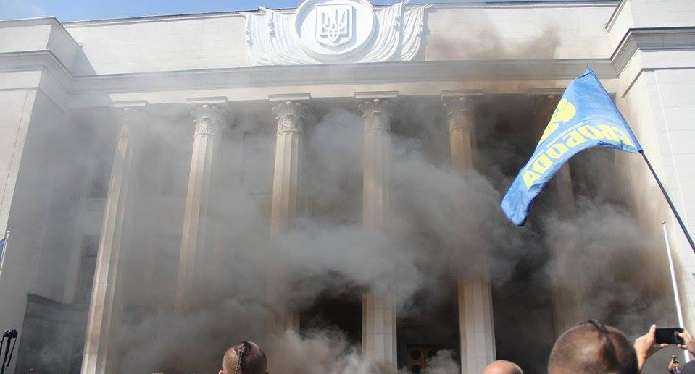 Во время столкновений с правоохранителями под стенами украинского парламента провокаторы использовали металлические цепи, дубинки и взрывпакеты. Об этом сообщил советник главы Министерства внутренних дел Зорян Шкиряк в эфире одного из украинских телеканалов.