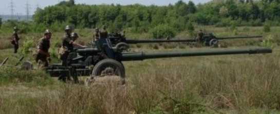 На Бахмутской трассе в район населенного пункта Желобок переброшена целая батарея противотанковых орудий МТ-12 «Рапира» в сопровождении БРДМ и БМП.