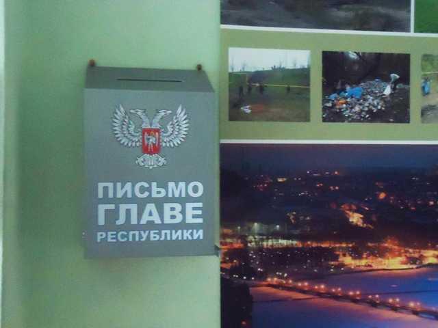 В здании администрации города Донецка, на первом этаже был установлен почтовый ящик «Письмо Главе Республики». Теперь каждый гражданин "ДНР" имеет возможность лично написать письмо Захарченко и получить на него ответ.