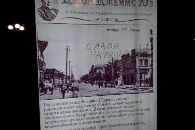 Вчера, 18 сентября, на бульваре Пушкина, дончане могли увидеть надпись, сделанную на лайтбоксе с историей про Юзовку неизвестным гражданином своей страны - "Слава Украине".