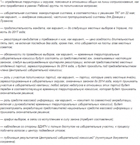 Переговорщики будут дискутировать о предложениях координатора соответствующей рабочей группы Пьера Мореля. То есть предполагается написание специального закона, который будет регламентировать проведение выборов в Донбассе под эгидой Киева.