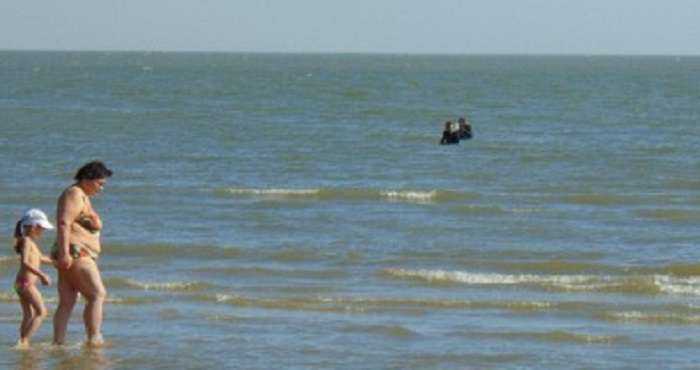 Сегодня мариупольцы, отдыхающие на городском пляже, были испуганы появлением в море двух мужчин в черных водолазных костюмах. В связи с близостью фронта, люди начали подозревать, что на городской пляж прибыли диверсанты.