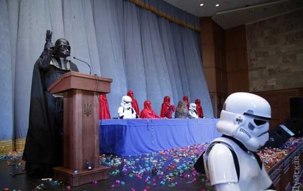 Так, Дарт Николаевич единогласно выдвинут съездом партии «Блок Дарта Вейдера» на пост мэра Одессы. Троих воздержавшихся тут же порезали световым мечом отчислили из рядов партии и выгнали из зала заседаний под крики «Ганьба!» и «Вырастили на свою голову!».