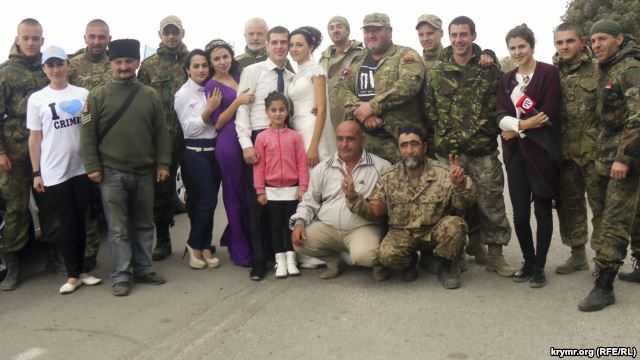 Как сообщает корреспондент Крым.Реалии , свадебный кортеж приехал на пропускной пункт «Чонгар», вблизи которого размещены палатки активистов блокады, называющих себя «крымским майданом».