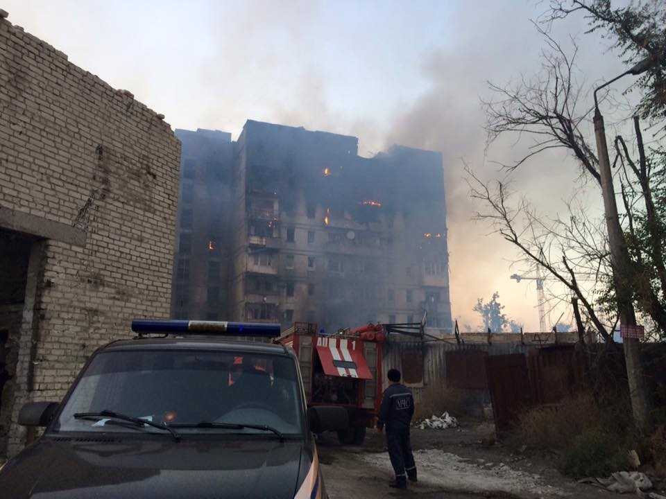 Стоит отметить, что адрес девятиэтажного жилого дома, чьи верхние этажи поглотило пламя, соответствует расположению штаба подразделения террориста "Гиви" - улица Взлетная, дом 11а.