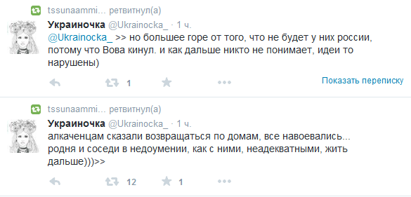 "алкаченцам сказали возвращаться по домам, все навоевались... родня и соседи в недоумении, как с ними, неадекватными, жить дальше))) но большее горе от того, что не будет у них россии, потому что Вова кинул. и как дальше никто не понимает, идеи то нарушены)", - пишет один из пользователей Твиттер.